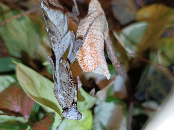 Deroplatys lobata Drohstellung bei der Oothekwache